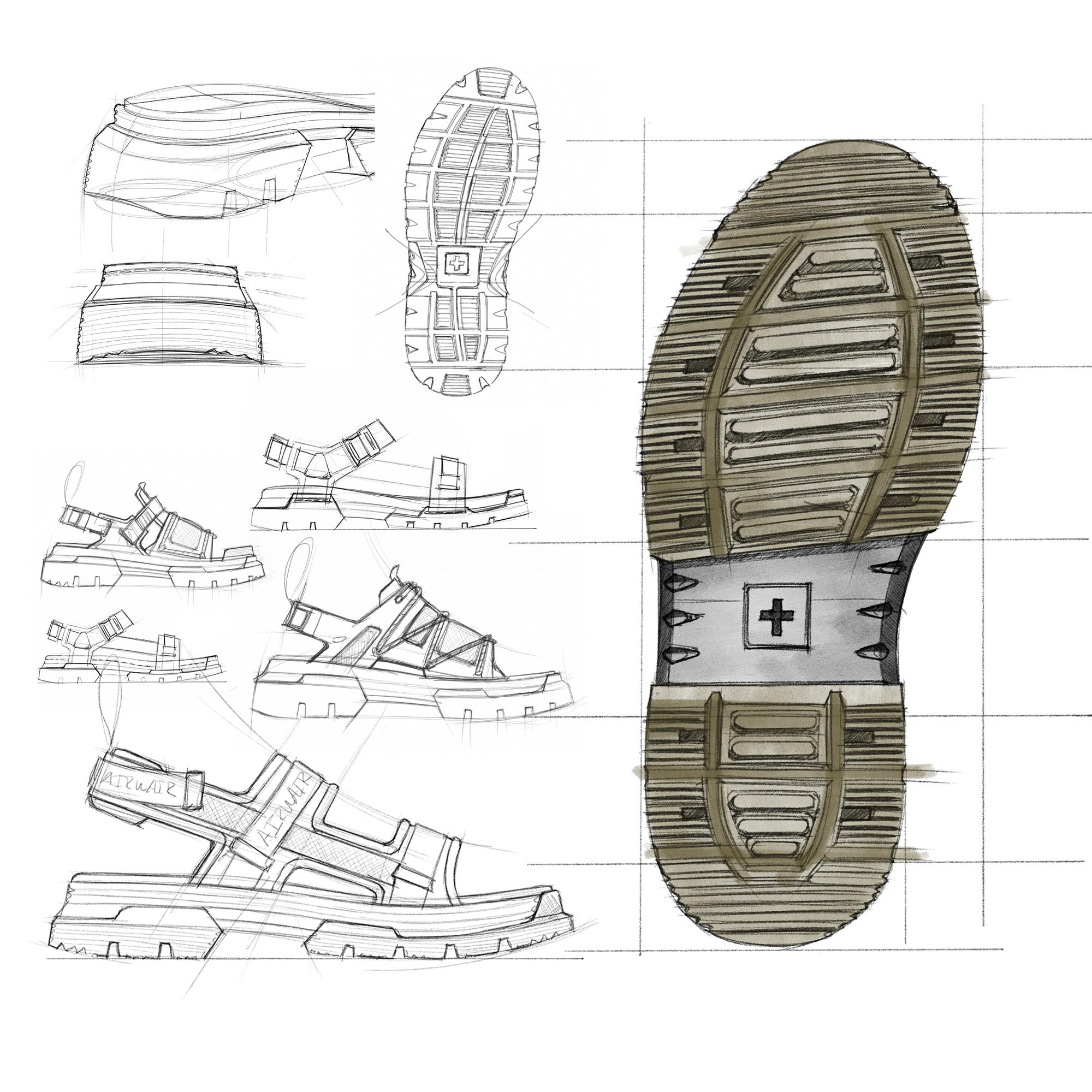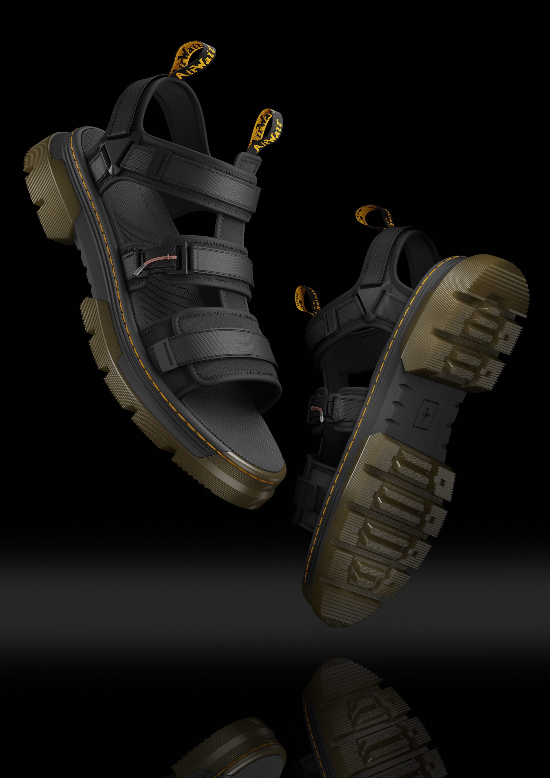 Tract is an integral product range within the Dr Martens casual category – The aim of this project was to design the next generation tract outsole, integrating current design language into a more aggressive look. Focused on sandals, this project introduced a new sandal construction for Dr Martens, using EVA with PVC pods.